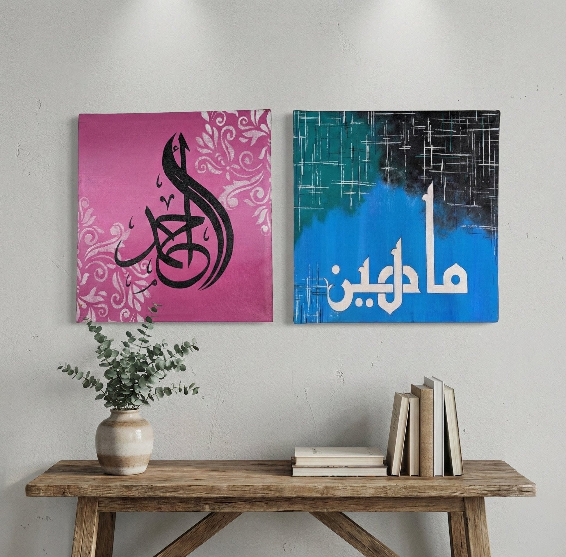This calligraphic canvas series blends spiritual elegance with modern artistic expression. Each piece is created to feel personal, meaningful, and timeless turning a simple name or phrase into a visual heirloom. The bold backgrounds carry gentle gradients, abstract textures, and subtle patterns, symbolizing how every name holds its own story and energy. The calligraphy flows like a signature of the soul, giving the artwork a sense of movement and life. Designed to bring calm, warmth, and cultural beauty into any living space, this canvas transforms identity into art and adds a dignified presence to the home.